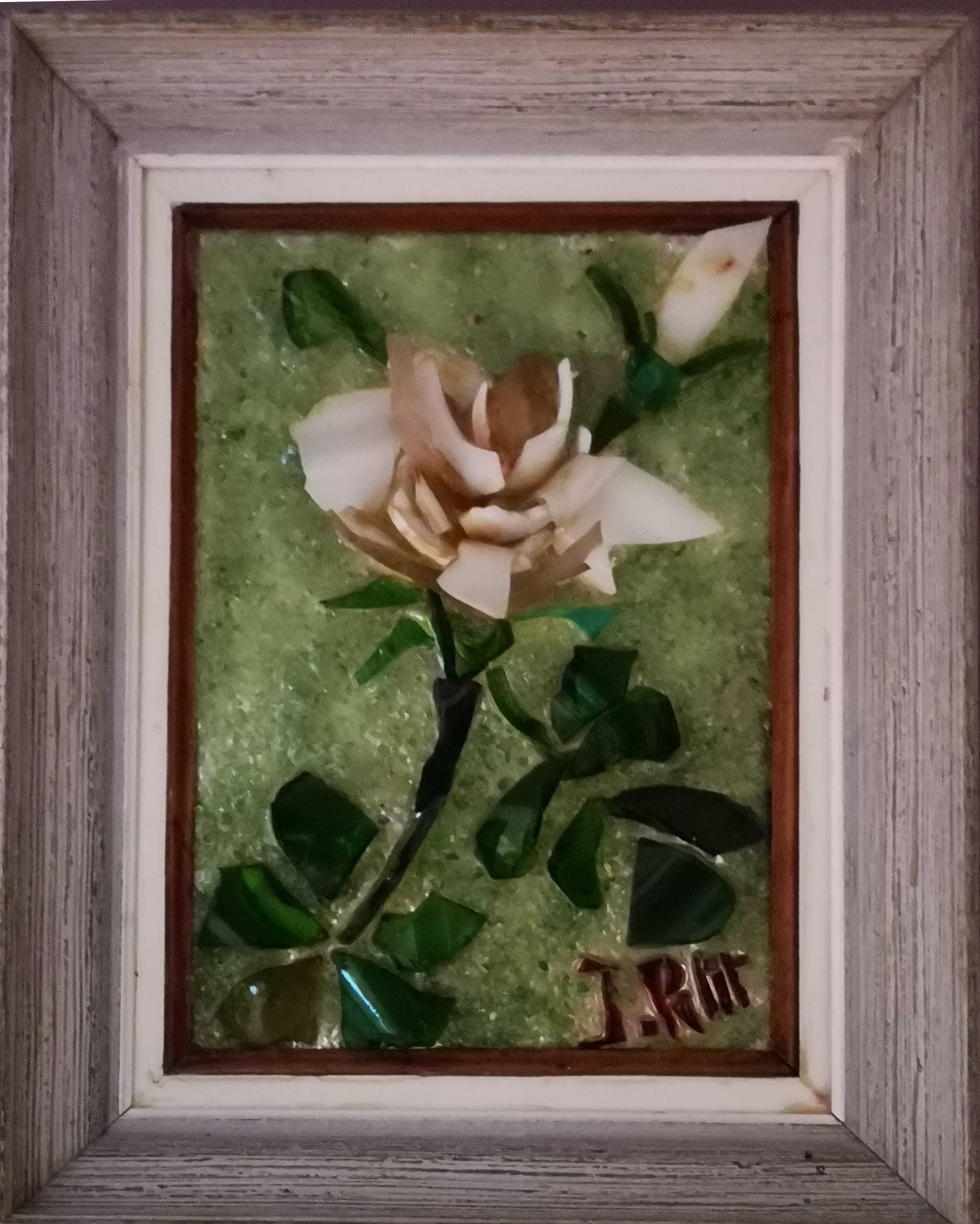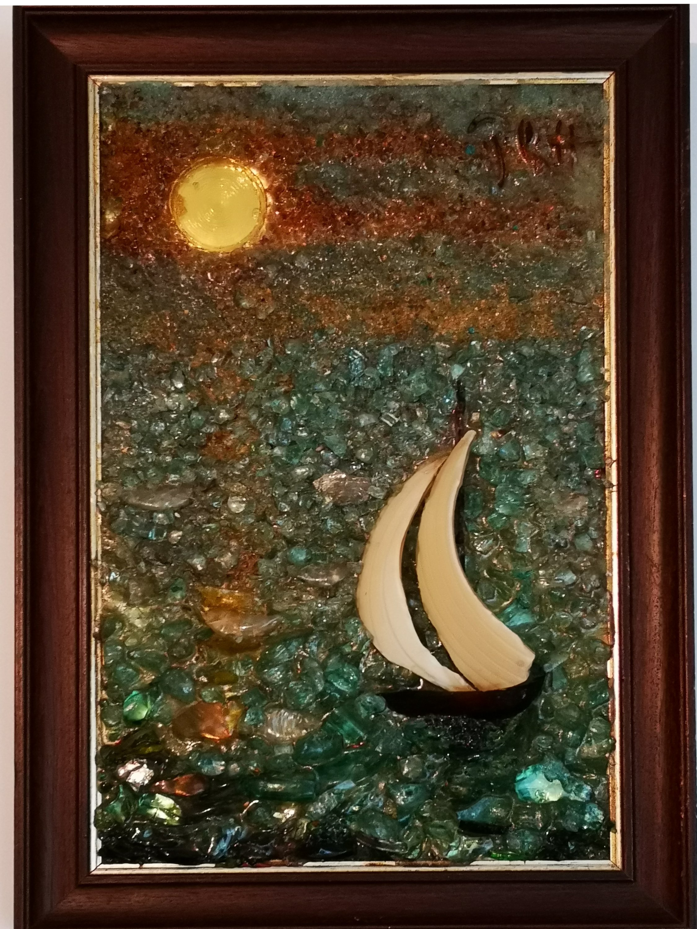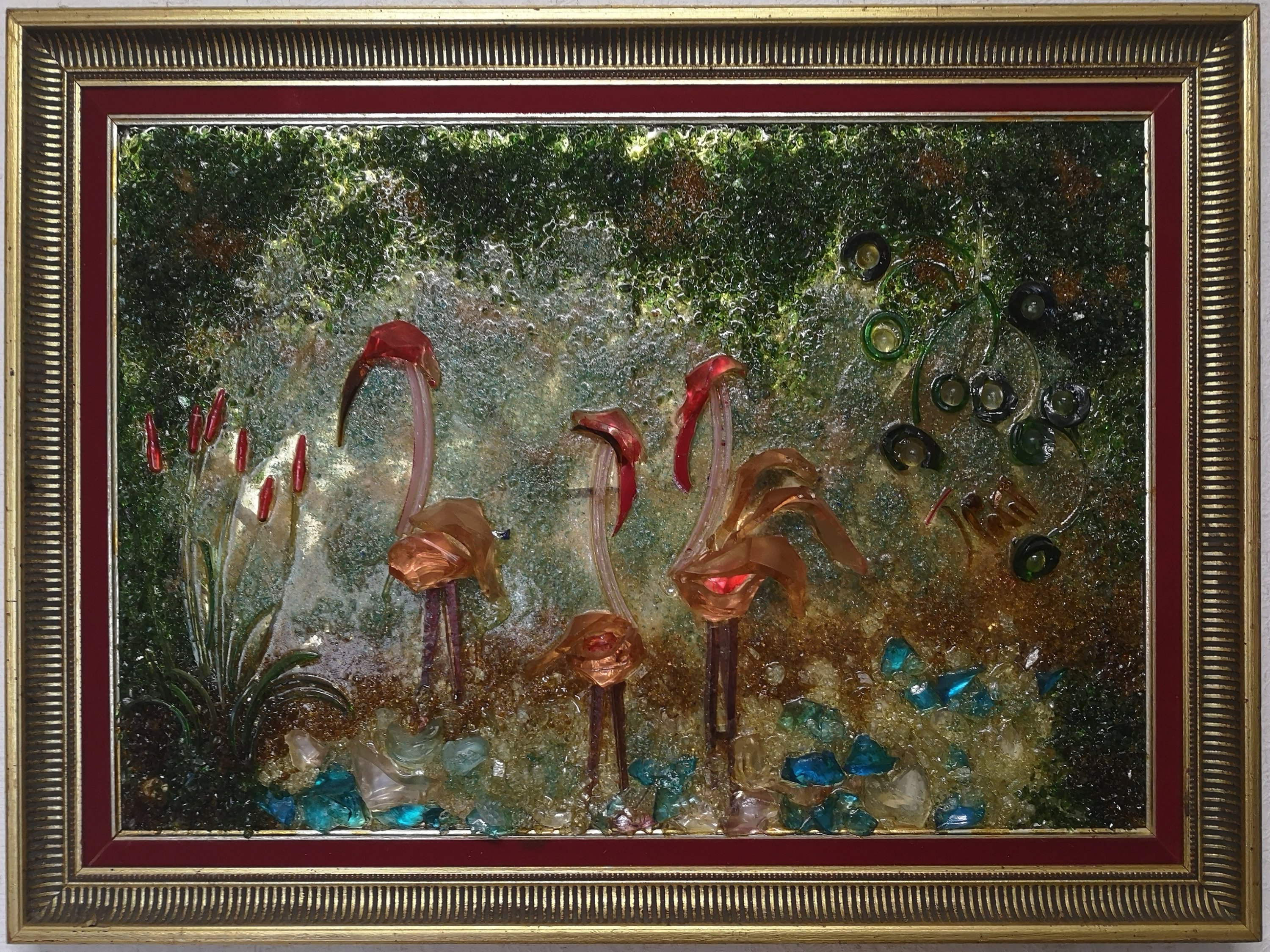 L'artiste a réalisé aussi des oeuvres de grande taille représentant des scènes et des paysages. Les tableaux, réalisés avec du verre de couleur collé sur miroir étaient très lourds et constuaient une épreuve physique intense lors des déplacements et l'installation sur cymèses.