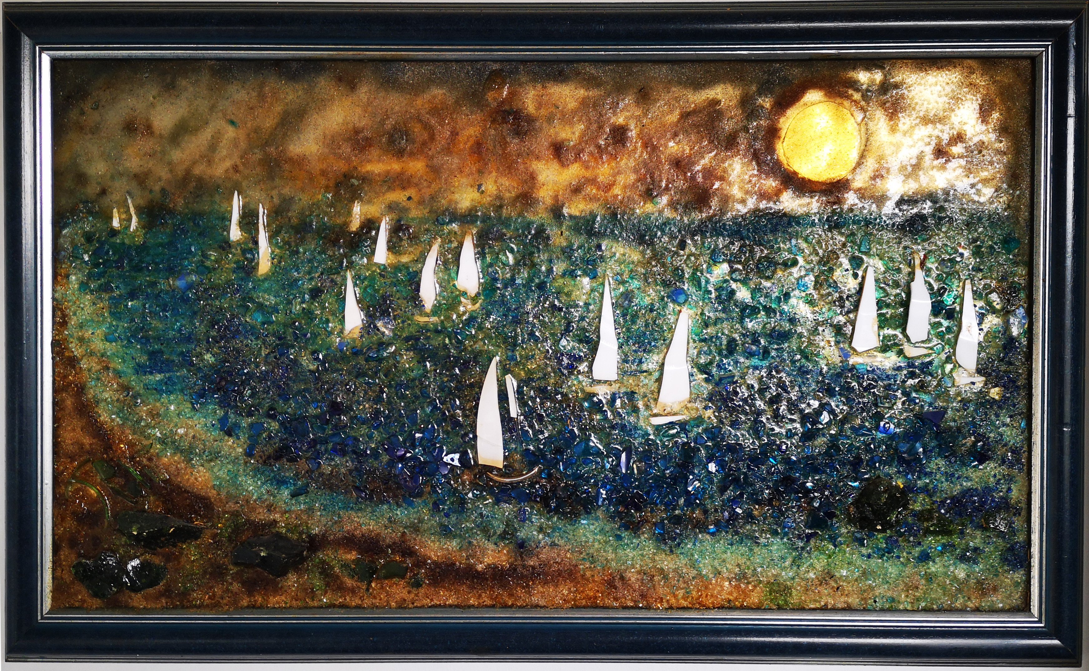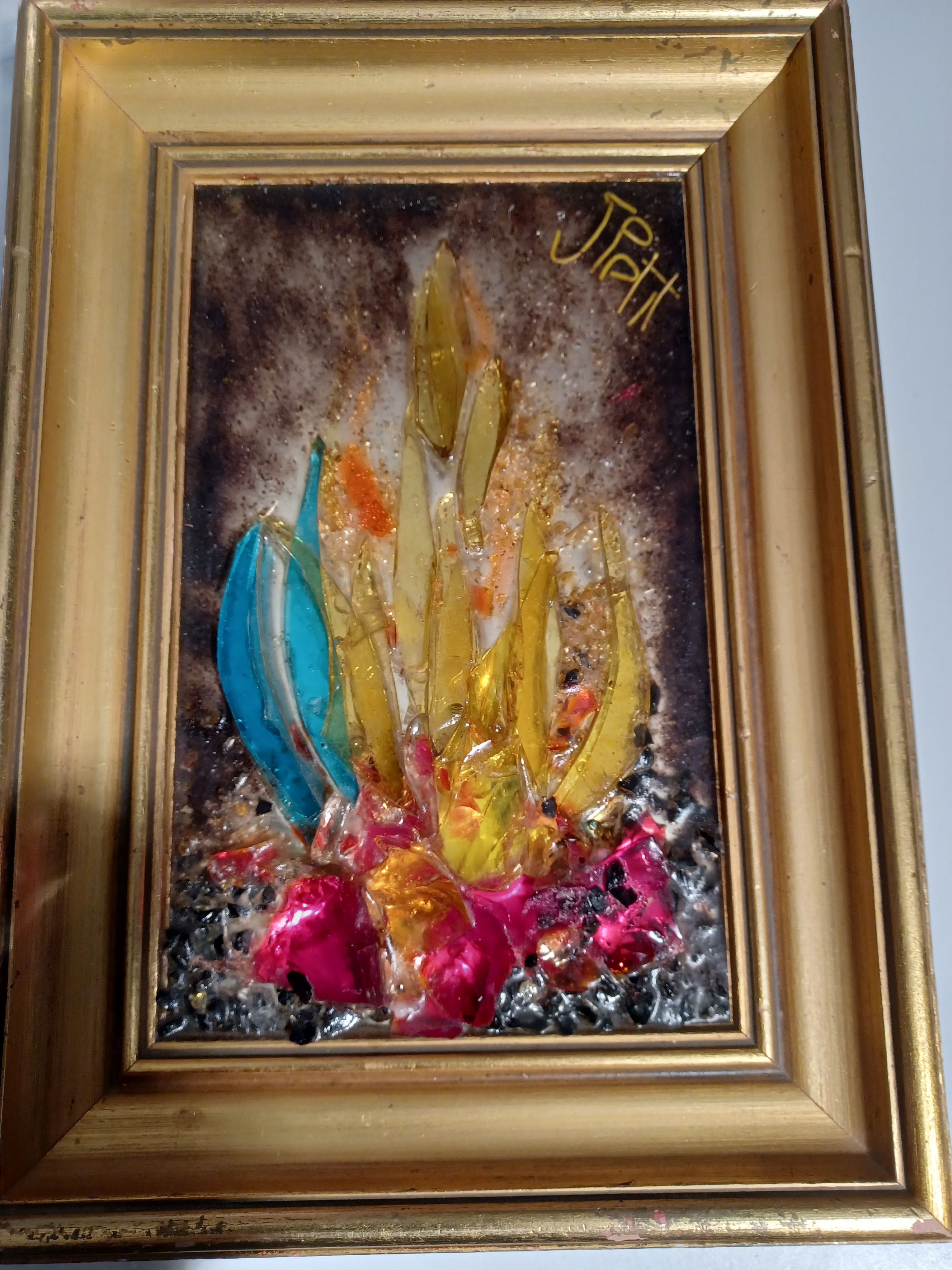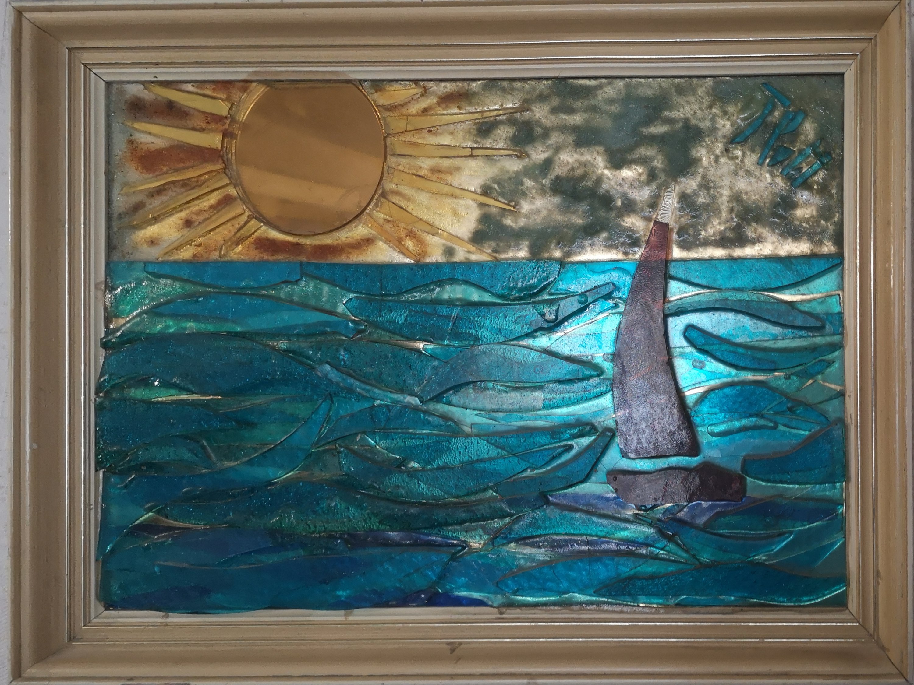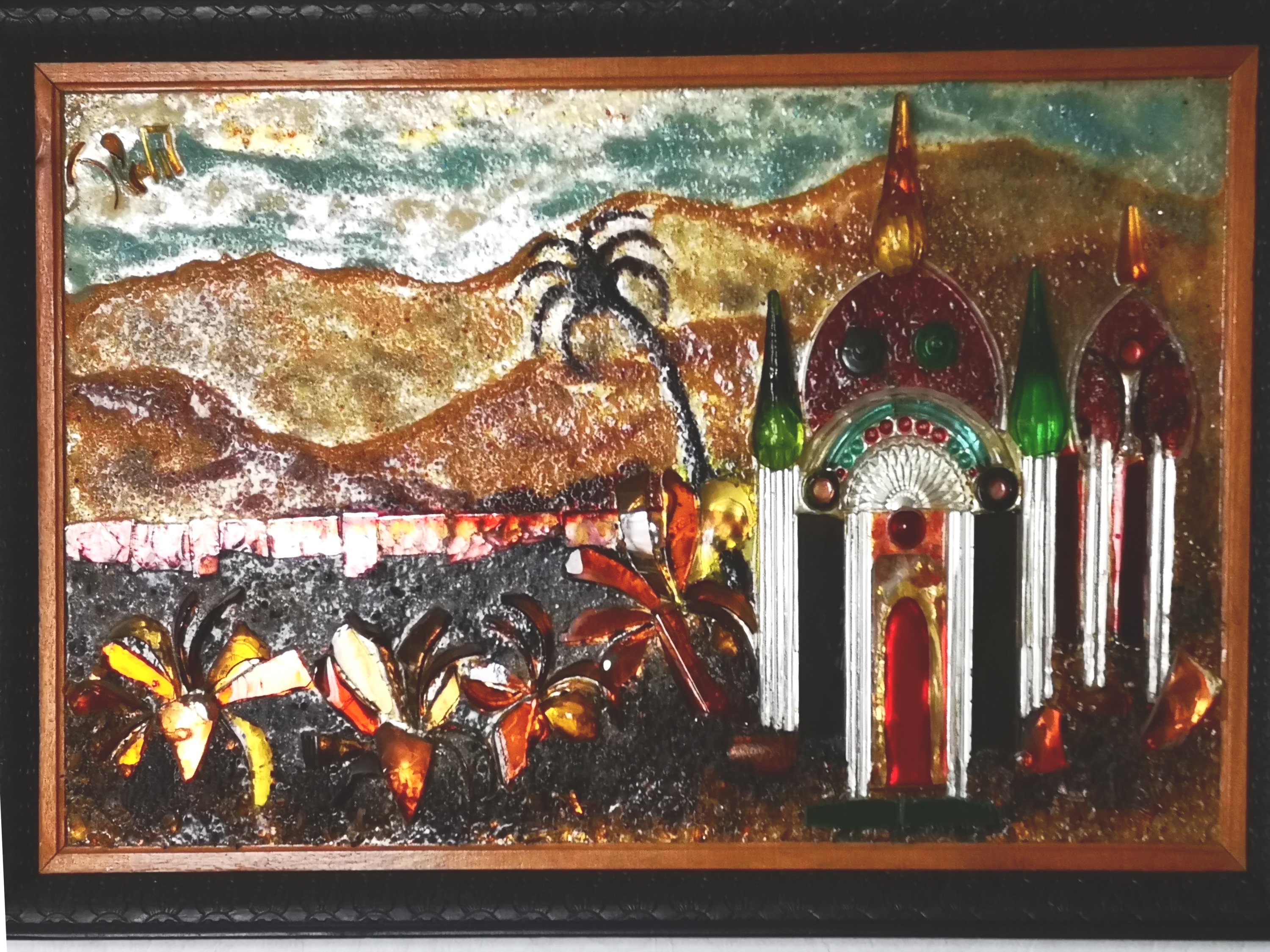 L'artiste a réalisé aussi des oeuvres de grande taille représentant des scènes et des paysages. Les tableaux, réalisés avec du verre de couleur collé sur miroir étaient très lourds et constuaient une épreuve physique intense lors des déplacements et l'installation sur cymèses.