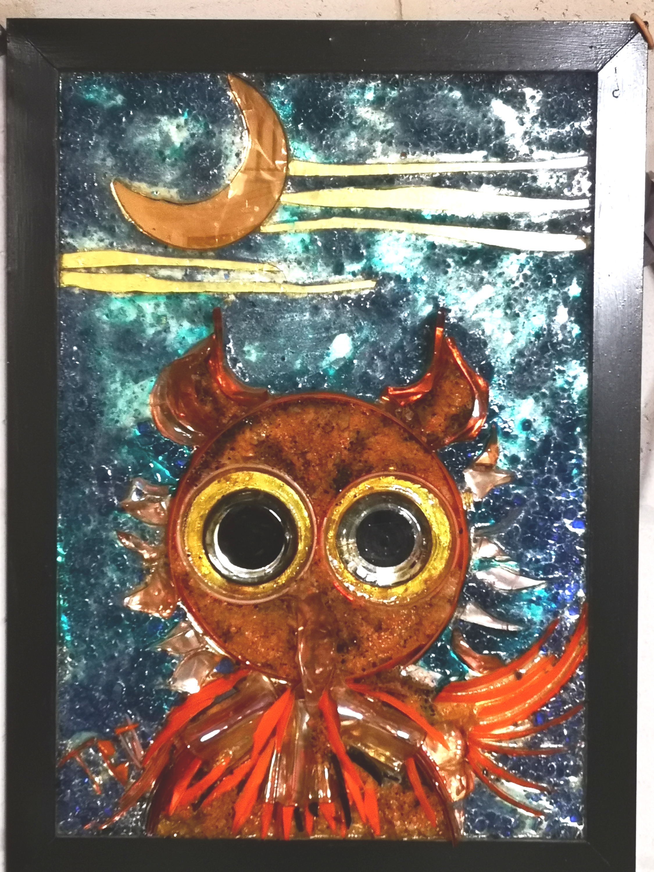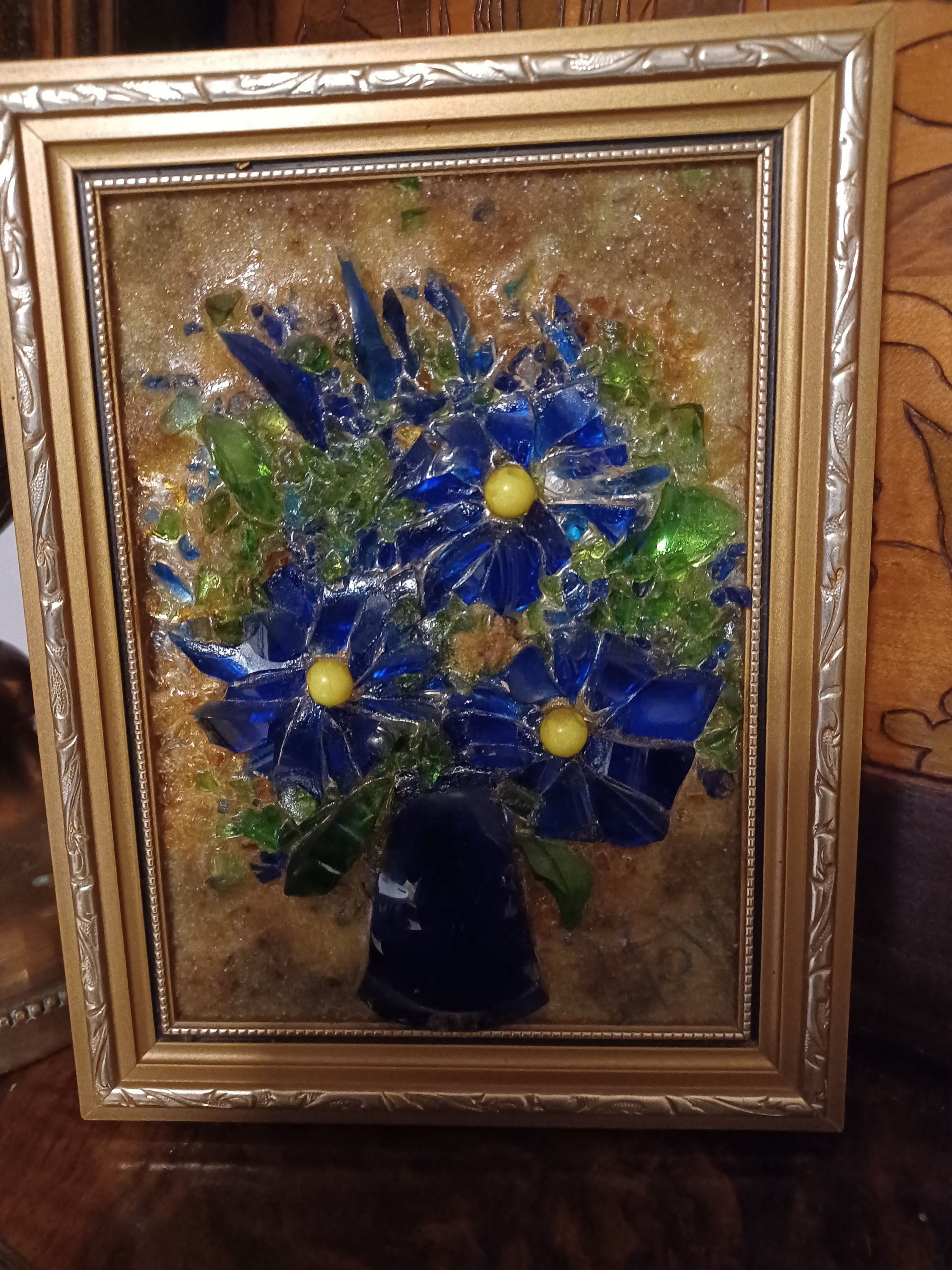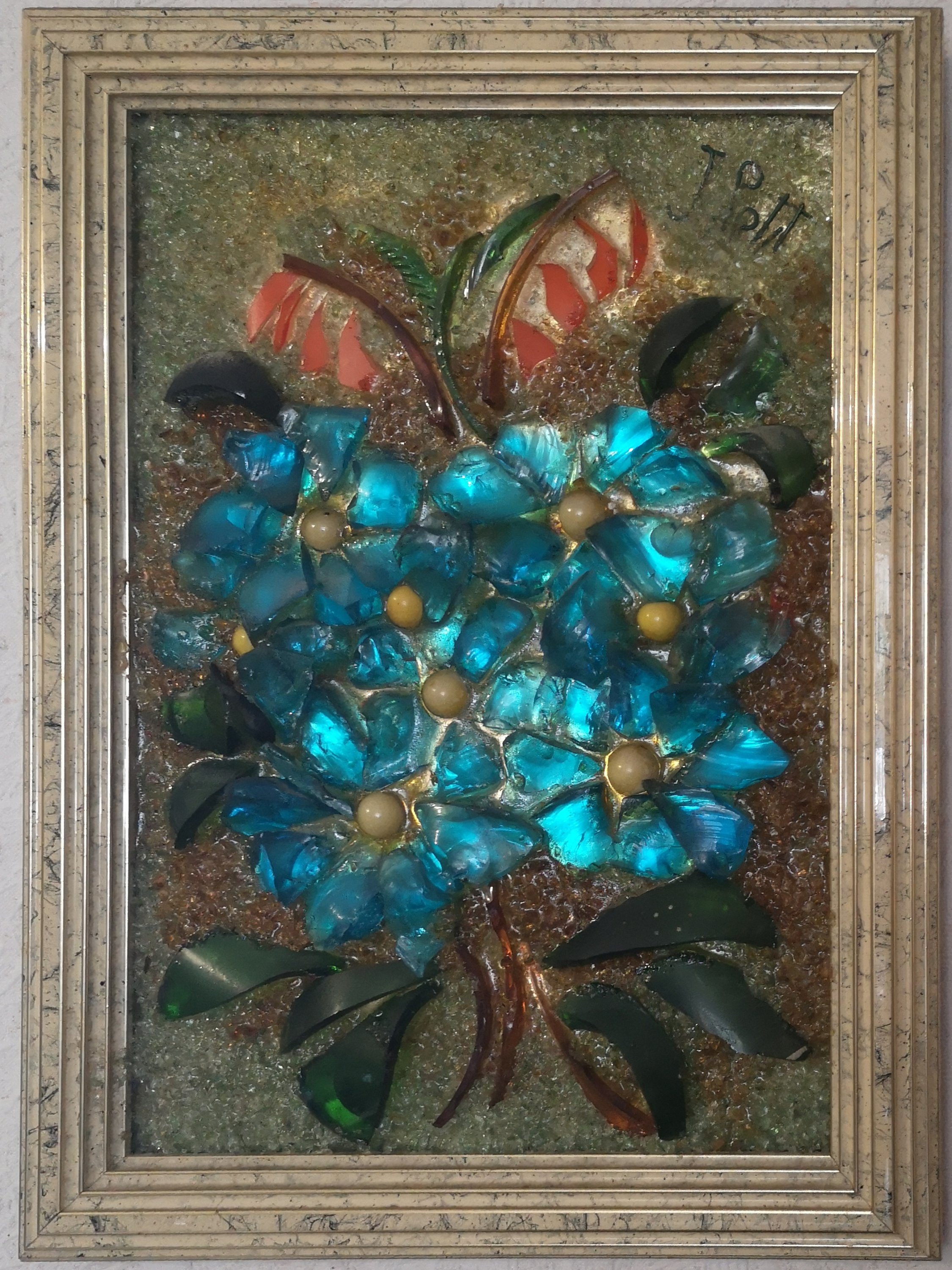 L'artiste a réalisé aussi des oeuvres de grande taille représentant des scènes et des paysages. Les tableaux, réalisés avec du verre de couleur collé sur miroir étaient très lourds et constuaient une épreuve physique intense lors des déplacements et l'installation sur cymèses.