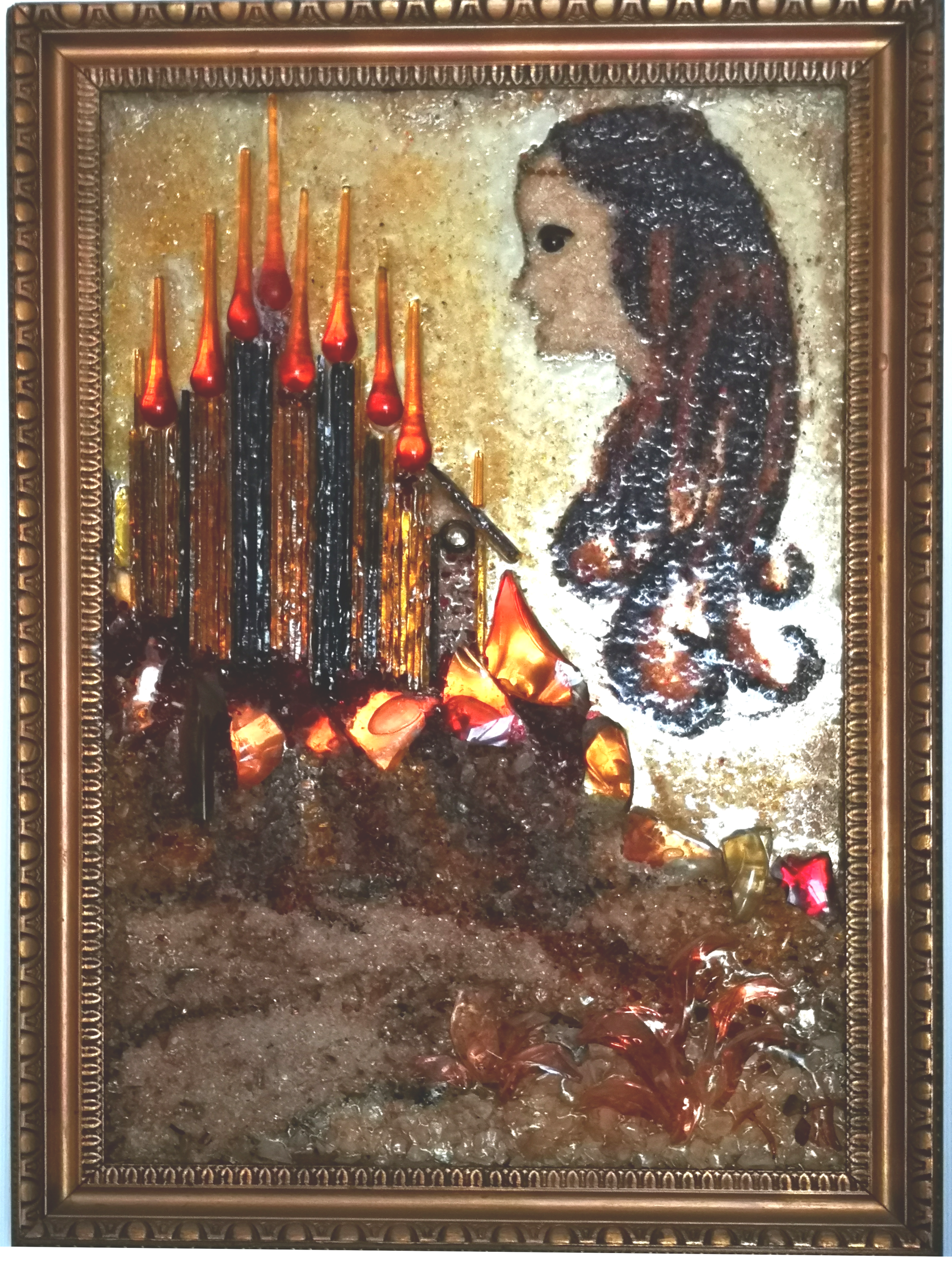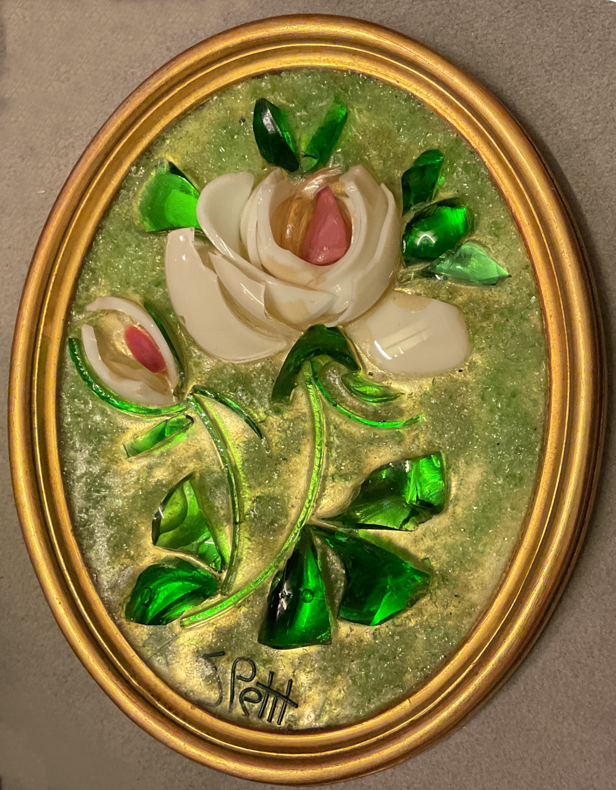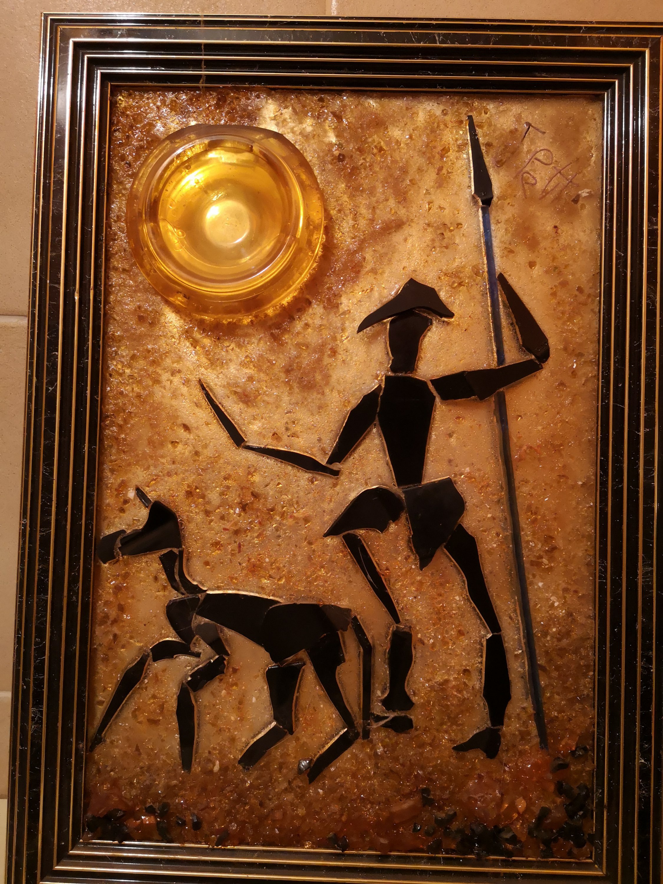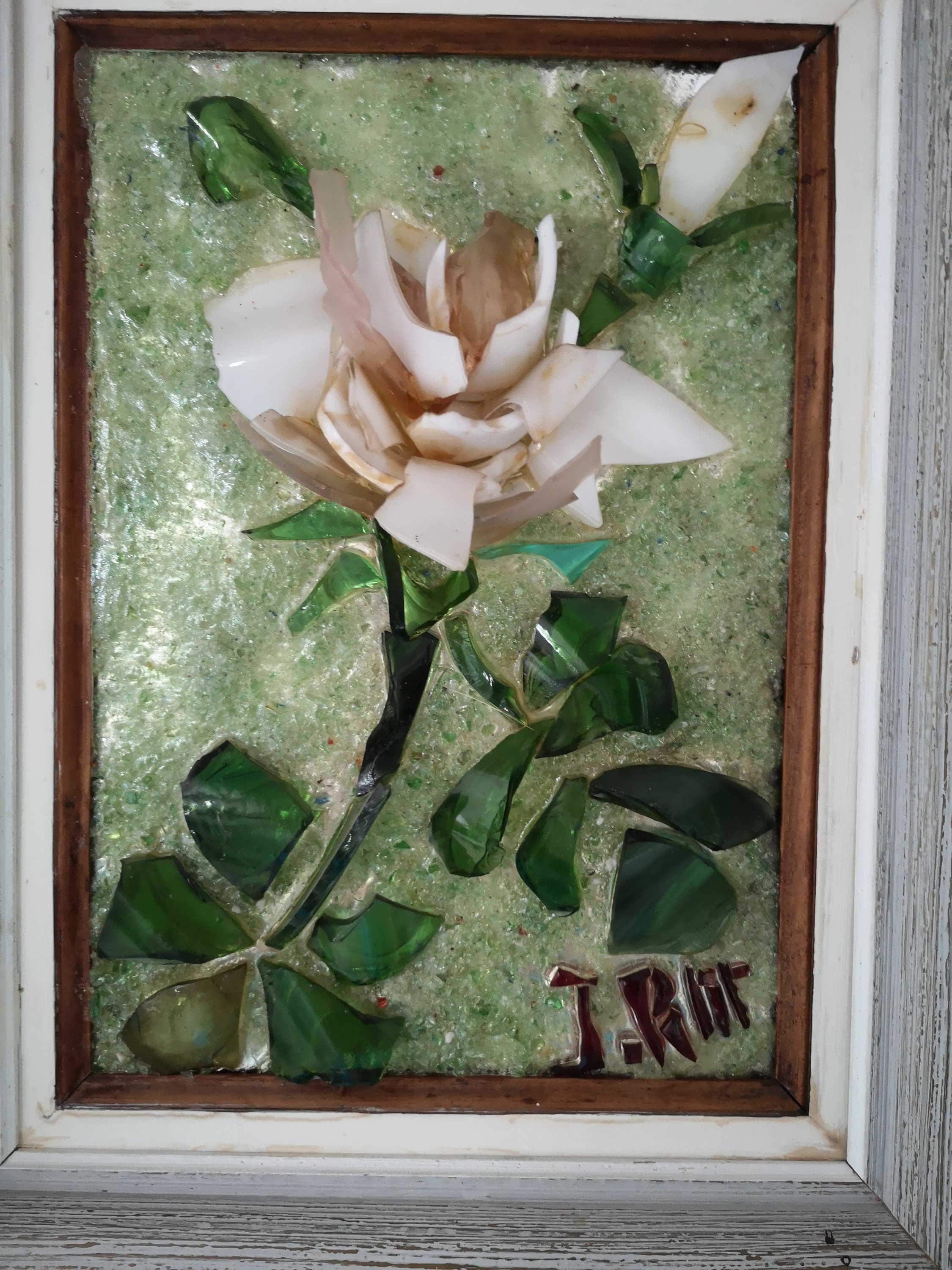 L'artiste a réalisé aussi des oeuvres de grande taille représentant des scènes et des paysages. Les tableaux, réalisés avec du verre de couleur collé sur miroir étaient très lourds et constuaient une épreuve physique intense lors des déplacements et l'installation sur cymèses.